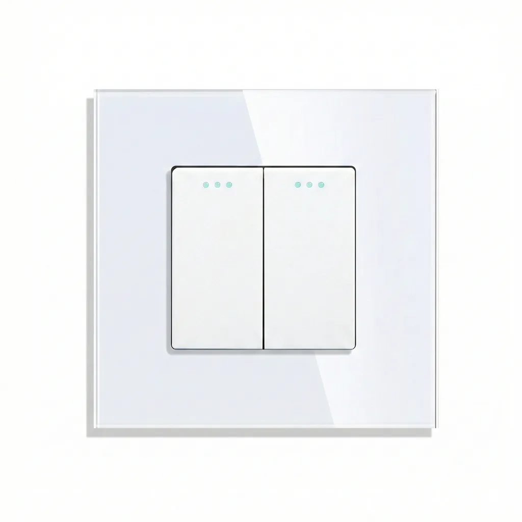 Tento dvojpólový vypínač, ktorý umožňuje ovládať dva svetelné okruhy z dvoch miest, predstavuje modernú náhradu za klasické plastové vypínače. Hlavnou prednosťou je predný panel z bezpečnostného skla, ktorý okrem estetickej funkcie prináša aj vysokú odolnosť voči mechanickému opotrebeniu a UV žiareniu, čo eliminuje degradáciu farieb.