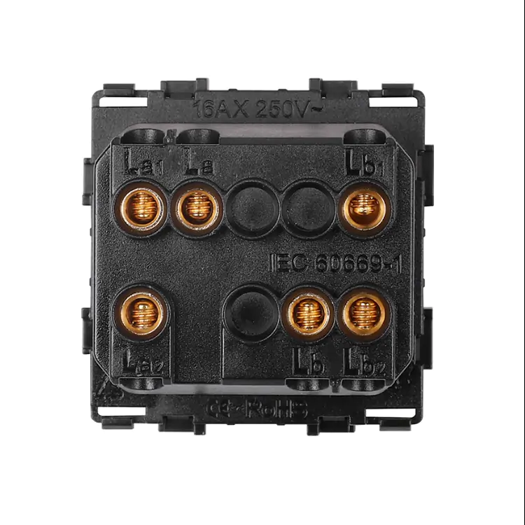 Vnútorné telo vypínača je vyrobené z kvalitného, tepelne odolného plastu, ktorý zaručuje stabilitu mechanizmu pri inštalácii aj dlhodobom používaní. Vďaka kompaktnej hĺbke mechanizmu (25 mm) zostáva v inštalačnej krabici dostatok miesta na manipuláciu s vodičmi, čo oceníte najmä pri starších rozvodoch. Vypínač je modulárny a možno ho osádzať do viacnásobných sklenených rámikov Revolo typu SR, čím dosiahnete jednotný vizuálny celok v celom interiéri.