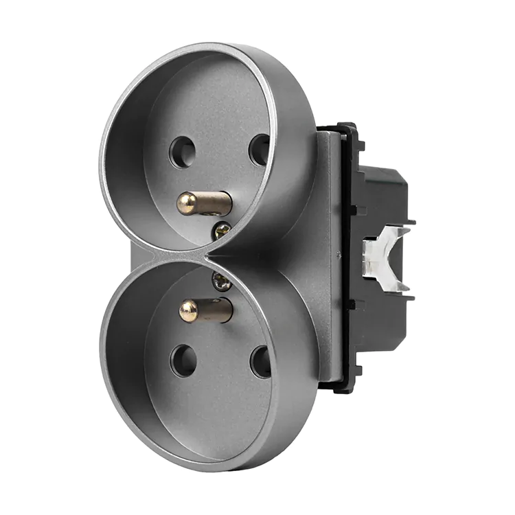 Modul elektrickej dvojzásuvky typu FR s moderným a nadčasovým skleneným rámikom ktorý zaručuje exkluzivitu a jedinečnosť Vašich elektrických zásuviek. Zásuvky sú v prevedení s ochranným kolíkom a detskou bezpečnostnou poistkou. Sú plne kompatibilné s klasickou elektroinštaláciou a sú schválené pre použitie na území Slovenska.